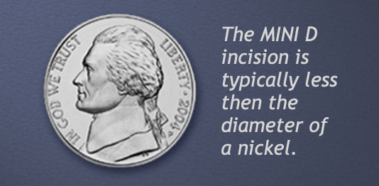 The MINI D incision is typically less than the diameter of a nickel.