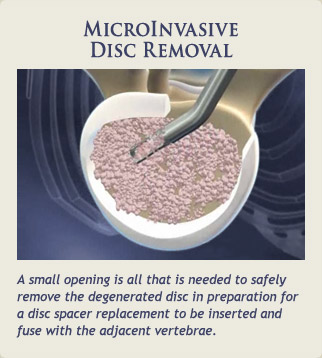 Once the disc space is exposed the procedure is performed using a microscope or endoscopically. After the disc is removed, a spacer made of PEEK, a thermoplastic, is then inserted into the disc space.